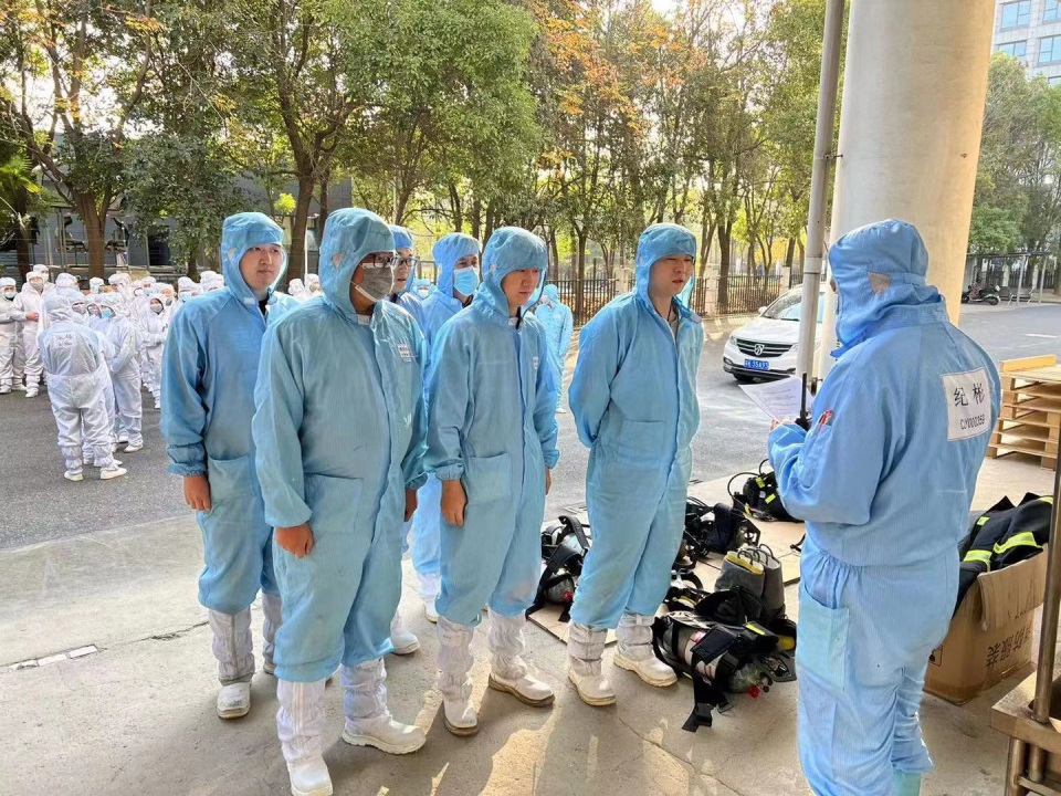 為提升員工對緊急意外事件的處置反應能力,熟悉各種滅火器的使用,檢驗應急預案的實用性和可操作性,總結應急實操演習過程中的優(yōu)缺點。11月25日,揚州乾照光電模擬外延部清洗間火災,進行車間人員疏散、應急人員現場滅火消防演練。